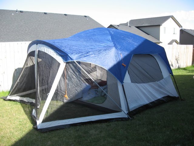 When we got home that night we decided to camp out in the back yard to see how Savannah would do before we attempted a real camping trip. Once again she was in heaven! Oh my goodness you'd think this was the most amazing thing to ever happen to her she was so excited, which in turn made the whole experience more fun for us. I got so sleep on our sofa cushions and we pulled out Savannah's crib mattress for her, poor Jacob got the hard ground. We also had our friends Clayton and Melanie camp out with us to so it was quite the party. Savannah was so excited she didn't fall asleep till like 11:30 and oh course was still up at 7:07 so I technically got to sleep in for 7 minutes.
